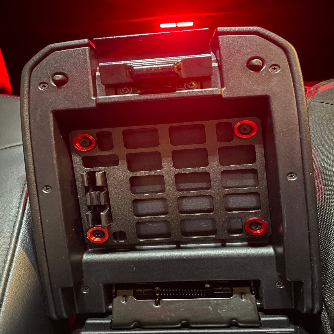 Looking to add some accessories to your center console armrest on your 3rd gen Tacoma. These are an easy 5min install. Light weight aluminum attaches easy to the lid and can hold leatherman's ,flashlights, and small pouches.